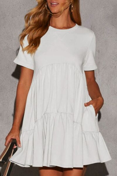 Devine Collared Neck Short Sleeve Midi Shirt Dress