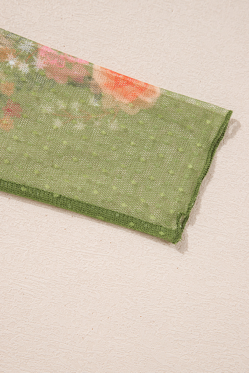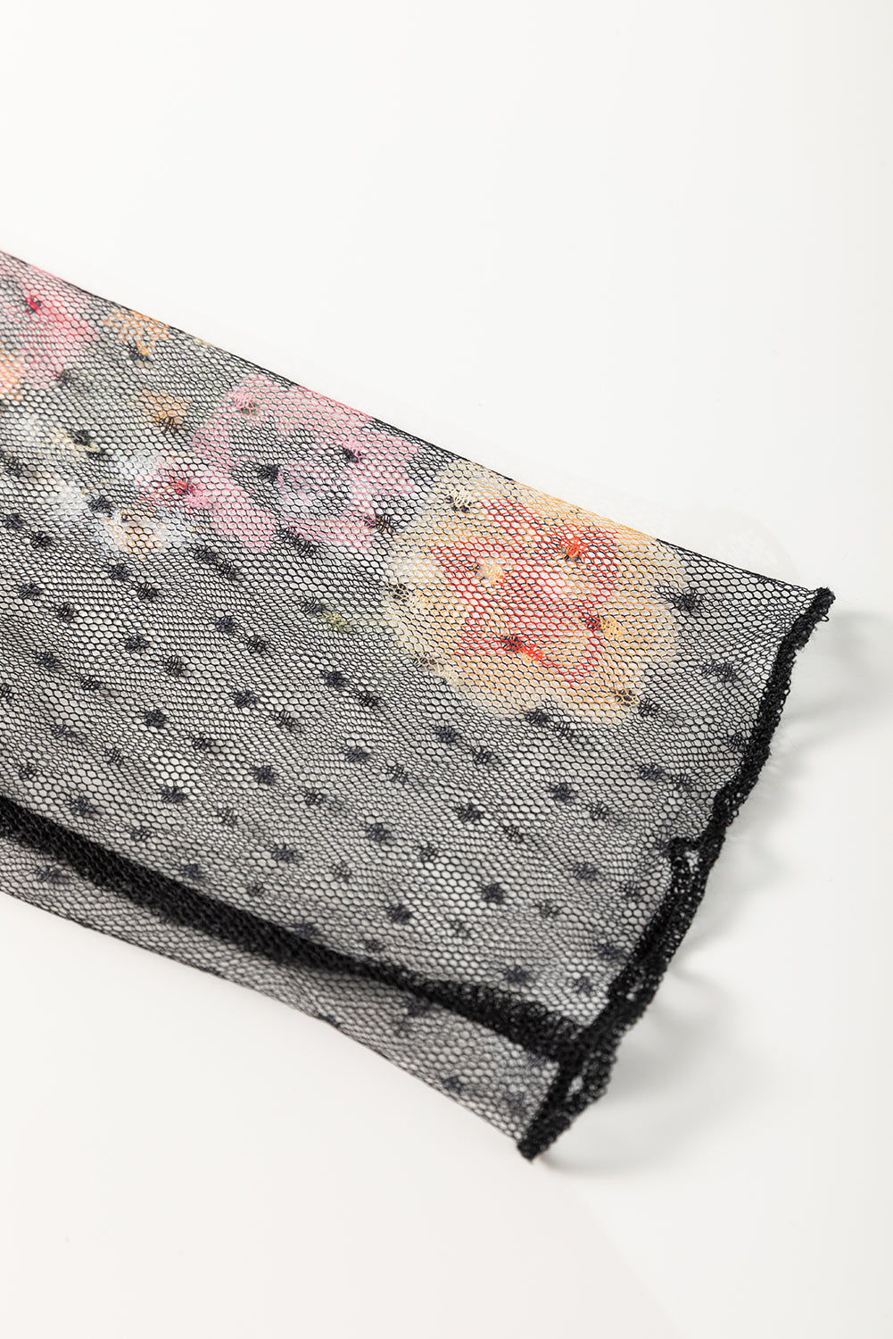 • Embrace elegant darkness with this Black Floral Mesh Sleeve Fake Two-Piece Top, blending casual charm with floral sophistication.