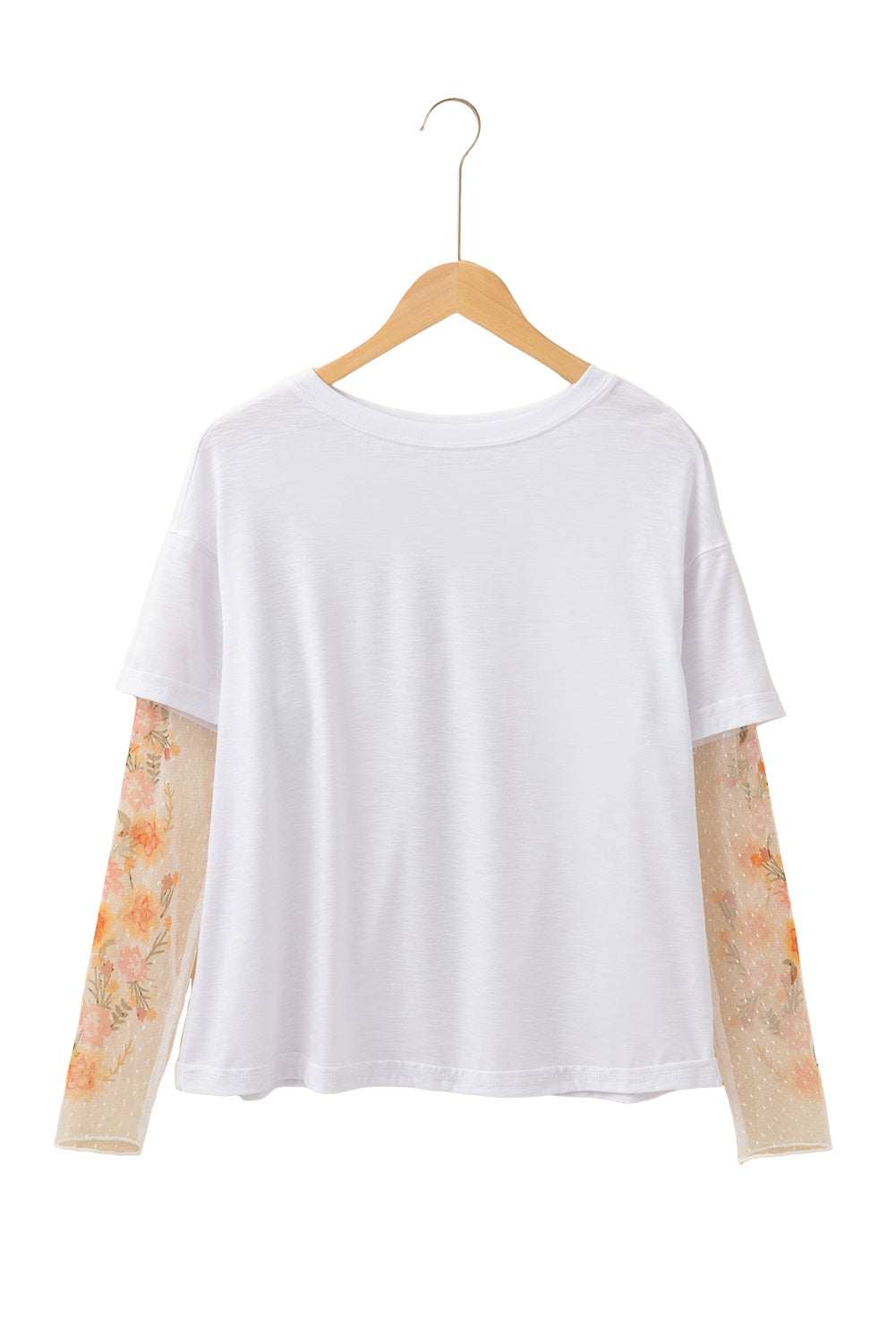 Black Floral Mesh Sleeve Fake Two-Piece Top