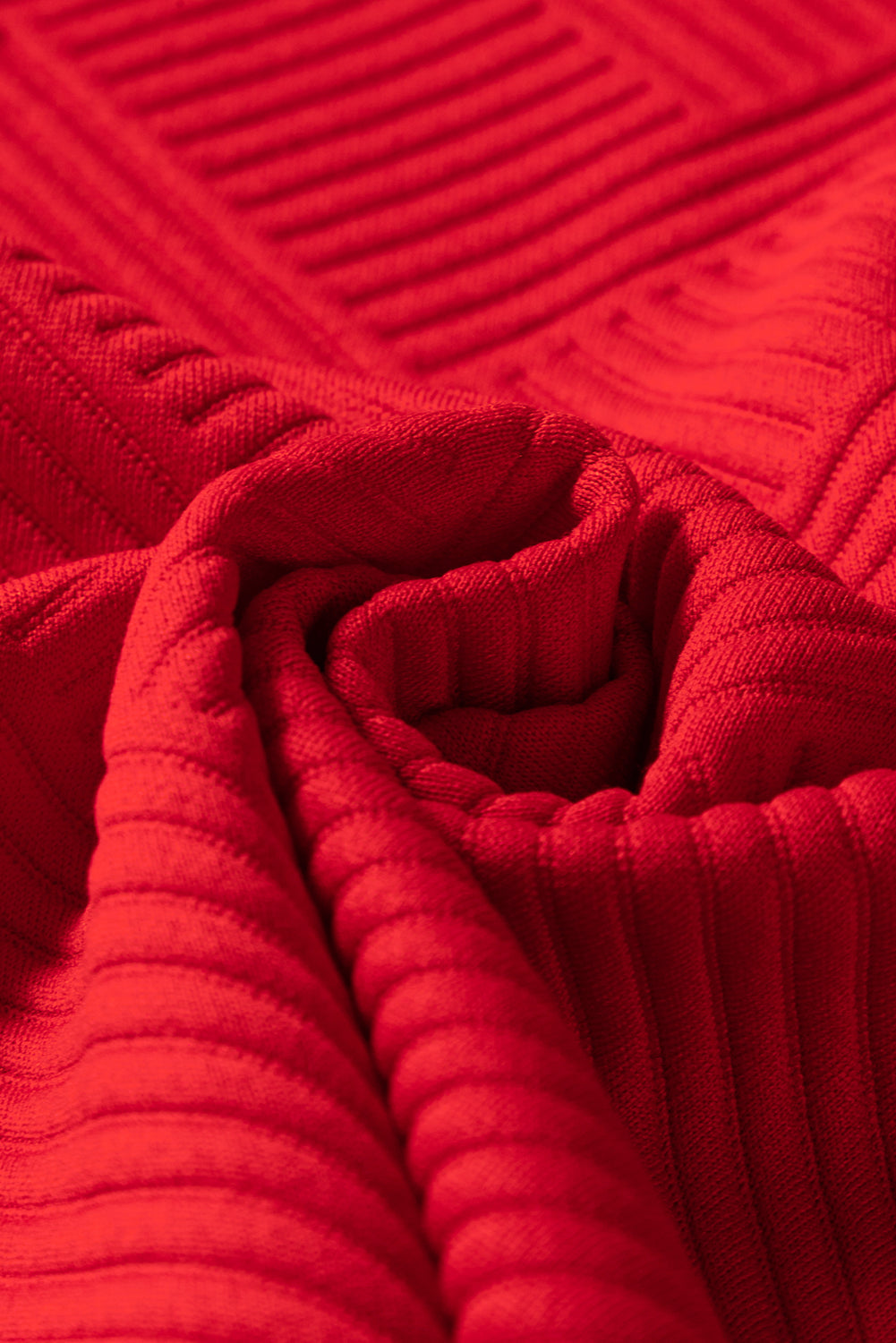 Fiery Red V Neck Puff Sleeve Textured Mini Dress