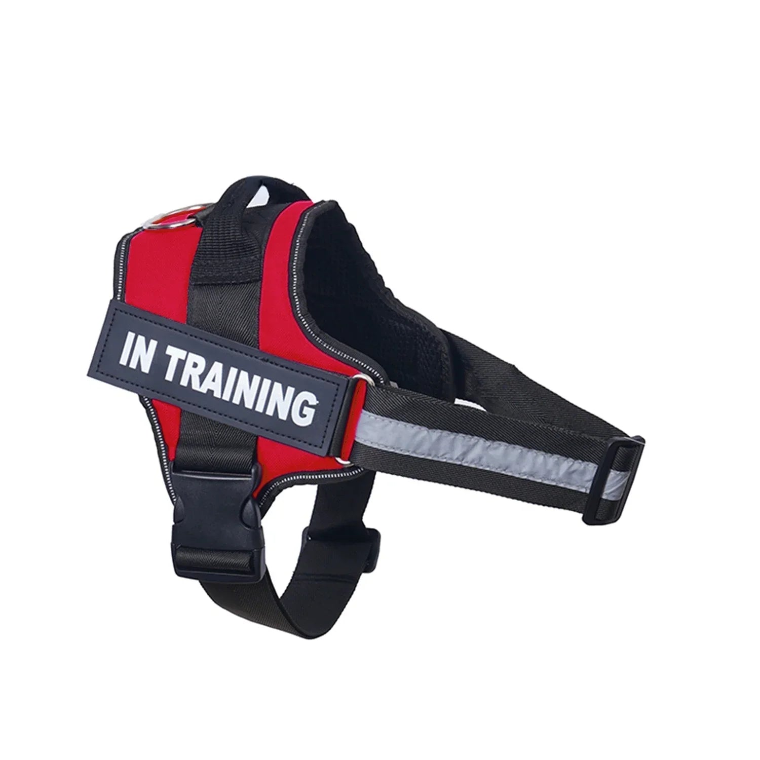 The harness features a robust handle for easy control and a secure D-ring for leash attachment. Perfect for crowded places and outdoor adventures.